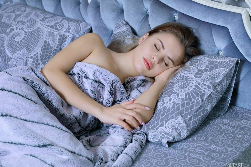 蓝眼睛的迷人女郎露出华丽的身体